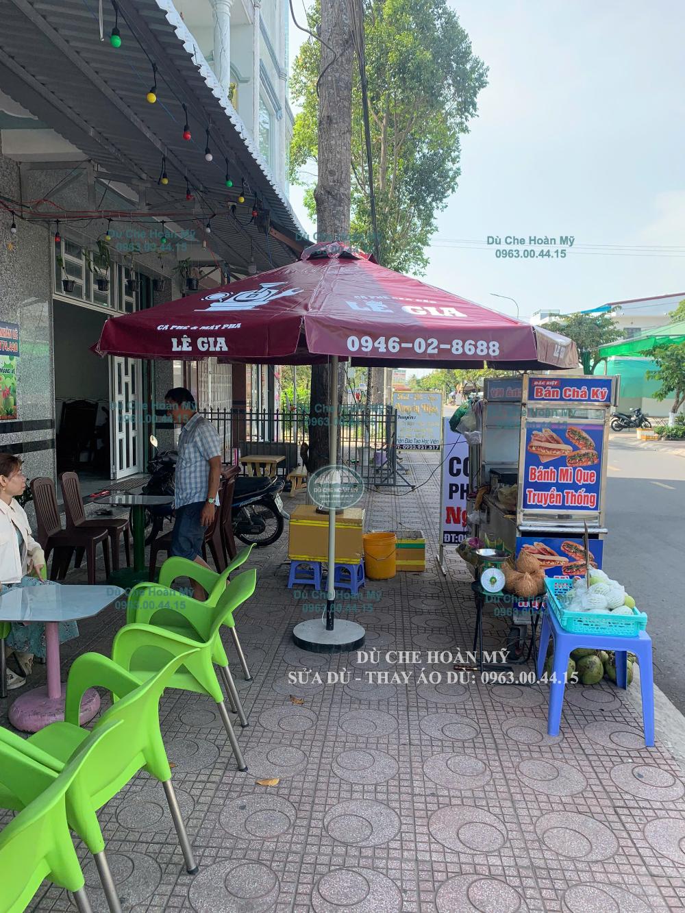 Logo xuất hiện đồng bộ trên các dù giúp không gian kinh doanh chuyên nghiệp và dễ nhận diện hơn.